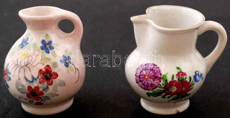 Herendi virágmintás porcelán kiöntő, kézzel festett, jelzett (koronás), kopásnyomokkal, kis lepattanással, m: 7 cm + Holland porcelán kiskancsó, kézzel festett, jelzett, kis kopásnyomokkal, m:7,5 cm