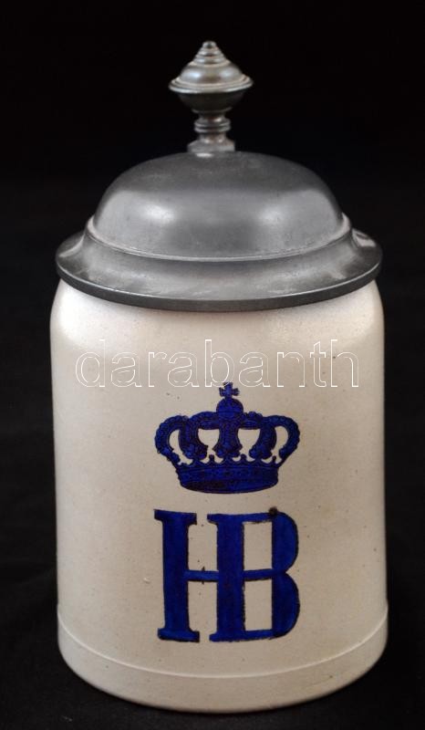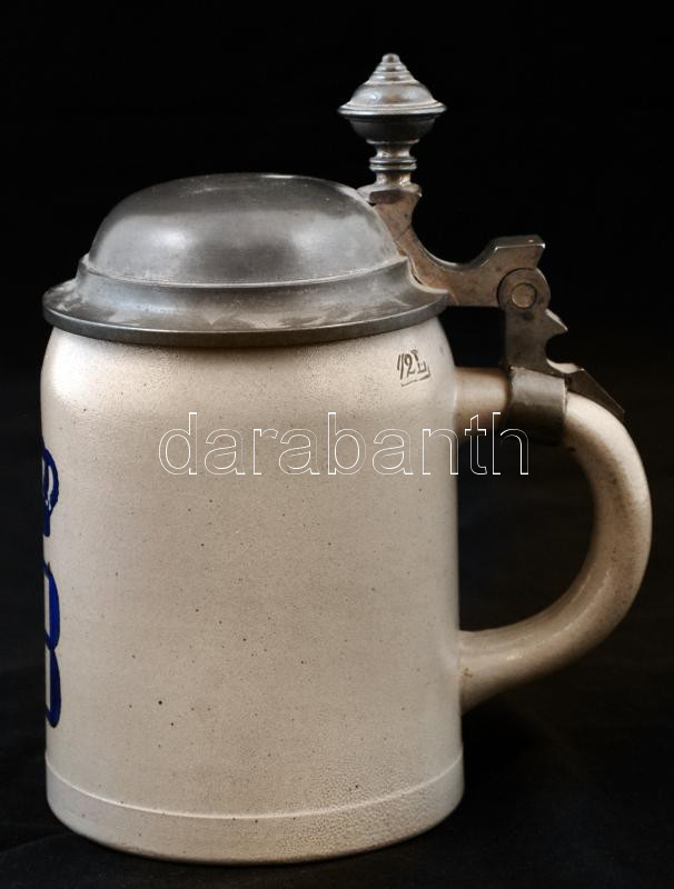 Jelzett ón fedeles korsó, hibátlan, m:16 cm