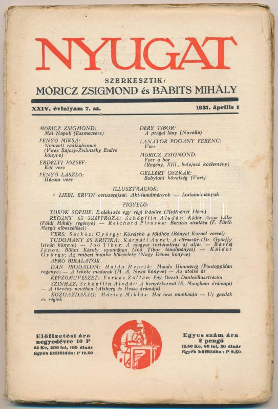 https://www.darabanth.com/en/241-Online-auction/241.0/Other-collectibles/Printed-Materials~900013/1931-A-Nyugat-cimu-folyoirat-XXIV-evfolyamanak-7-szama-benne-Dery-Tibor-Moricz-Zsigmond-~II1048442