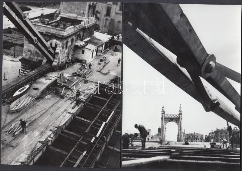 cca 1959 Rózsa György fotóriporter képsorozata az Erzsébet híd bontásá...