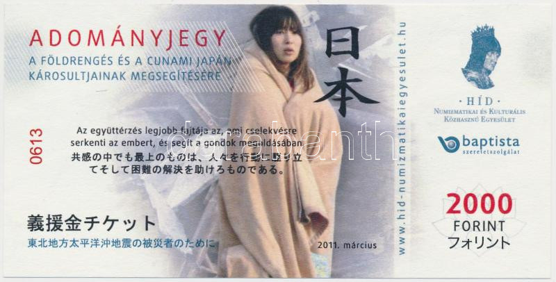 2011. 2000Ft "Adományjegy a földrengés és a cunami japán károsultjainak megsegítésére" T:I
