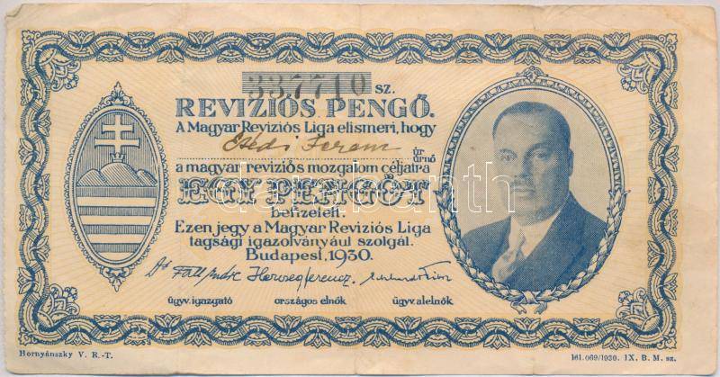 Budapest 1930. "Revíziós Pengő" arcképes változat, kitöltött...