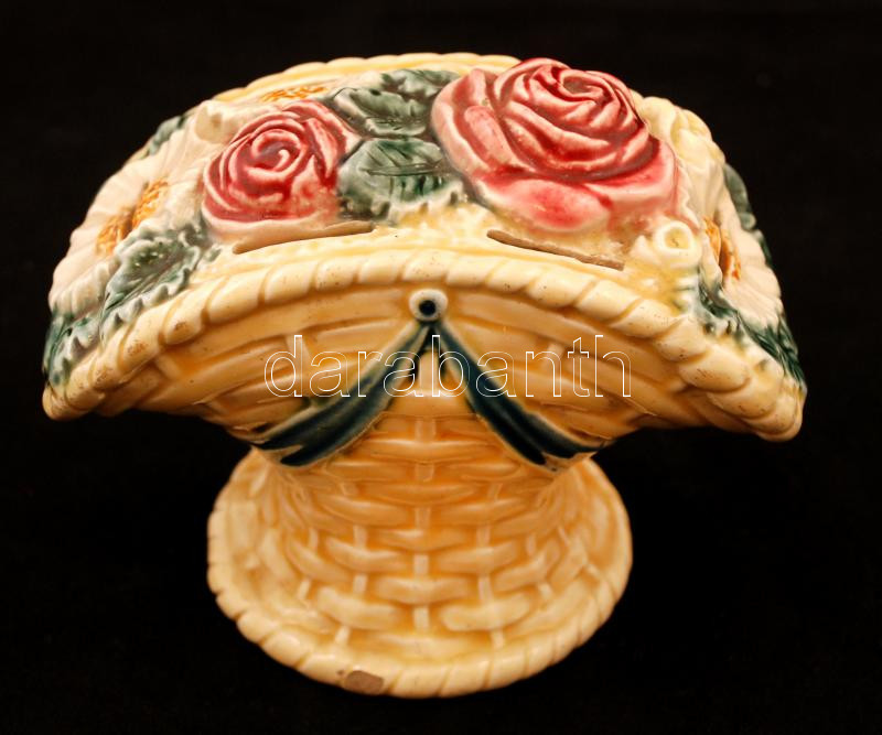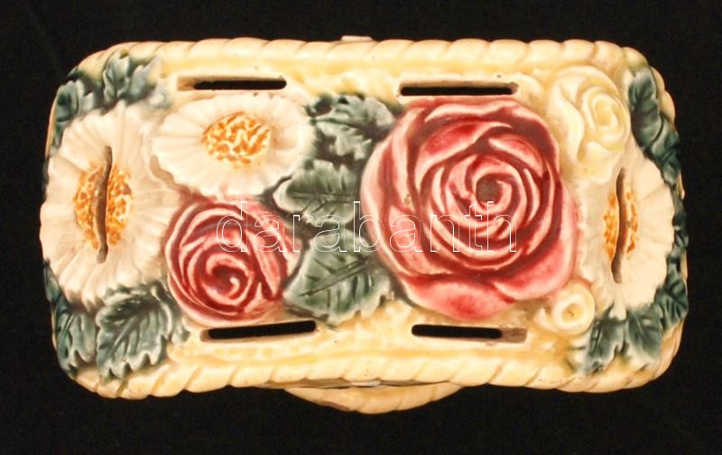 Virágcsokrot formázó díszes kerámia persely, jelzés nélkül, apró kopás...
