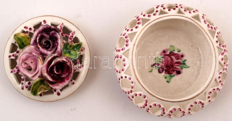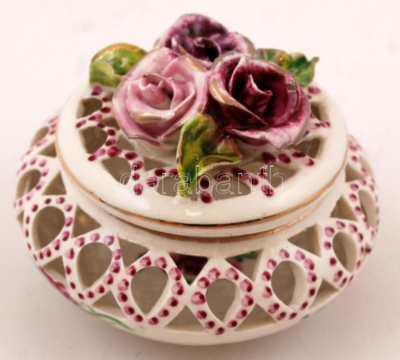 CFH Poland áttört ékszertartó, kézzel festett, jelzett, hibátlan, d:8 cm, m:6 cm