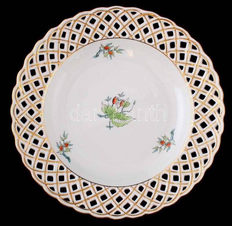 Herendi csipkebogyó mintás áttört kínáló, kézzel festett, jelzett, hib...