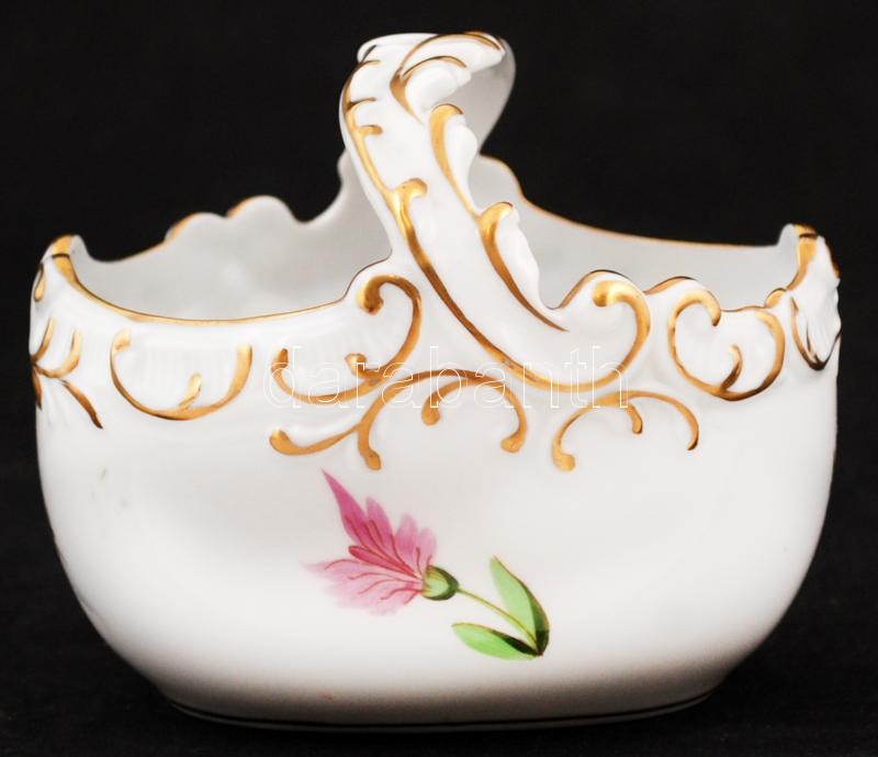Herendi kosárka, kézzel festett, jelzett, hibátlan, 8×11 cm