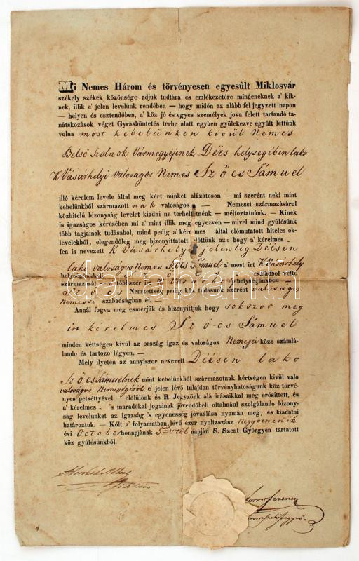 https://www.darabanth.com/en/243-Online-auction/243.0/Other-collectibles/Historical-documents-manuscripts~400027/1840-Miklosvar-szekely-szek-altal-kiallitott-nemesseg-igazolas-kihirdetesi-zaradekkal-~II1137023