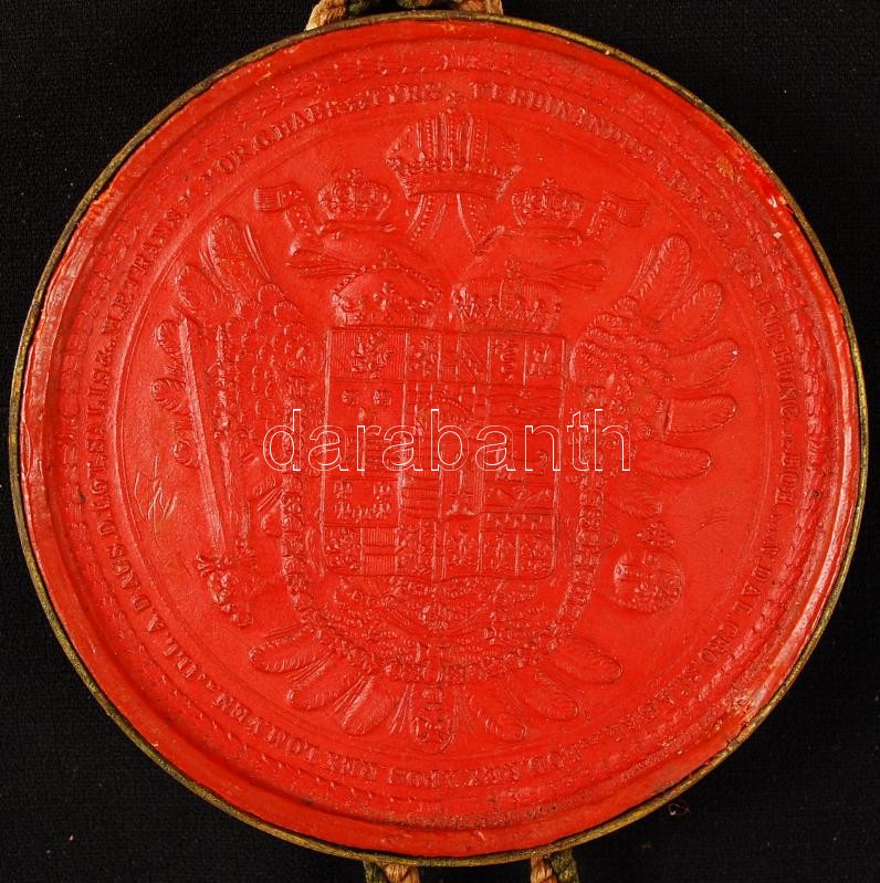 1845 Guild warrand issued by Emperor Ferdinand to the blacksmith, tailor, mine-blackmith, painter guild of Svedlar (Schwedler) in Spis. Some pages are hand written, the 16 pages of the statutes are printed. With autograph signature of the Emperor and his chancelor. In Velvet binding, with wax seal in copper case. In nice condition 28x36 cm