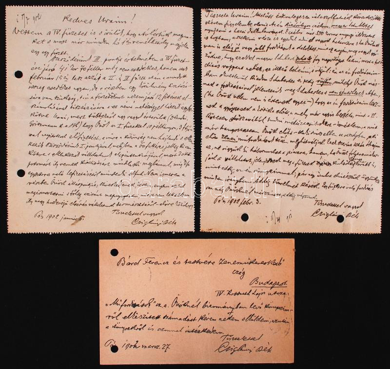 1902 Cziglányi Béla zenei műfordító 3db autográf, aláírt levele a Bárd Ferenc és Testvére Zeneműkereskedésnek címezve kiadások és honorárium ügyében
