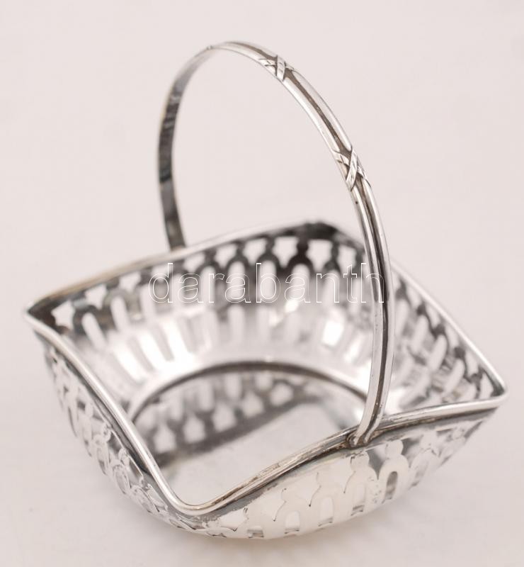 Ezüst (Ag.) kosárka, jelzett (német), 7×7 cm, nettó:38 g