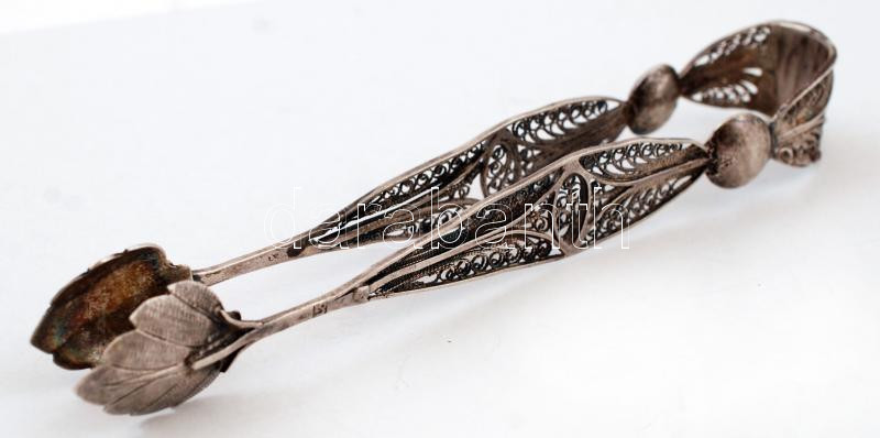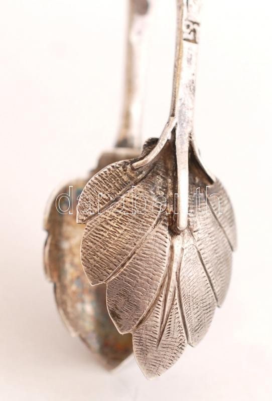 cca 1850 Gazdagon díszített levélmotívumos ezüst (Ag.) antik cukorfogó...