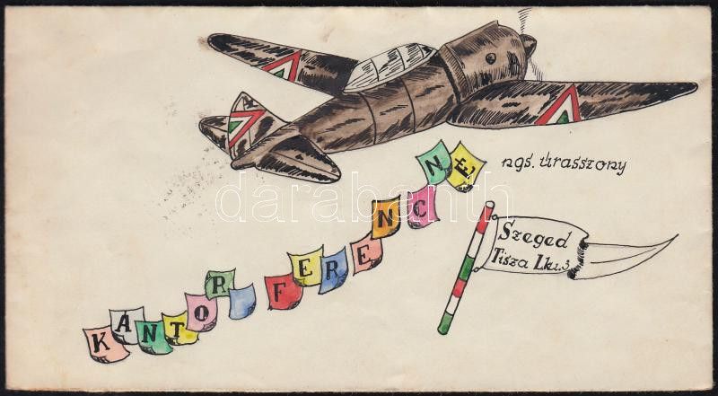 1942 Dekoratív kézzel festett boríték Kecskemétről Szegedre / Hand painted cover