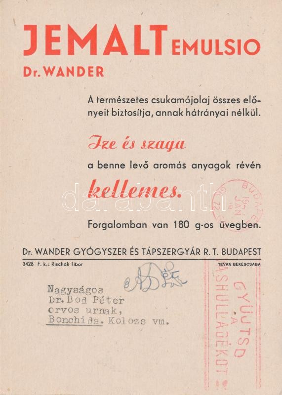 Jemalt emulsio, reklám / medicine advertisement (16.6 x 11.9 cm)