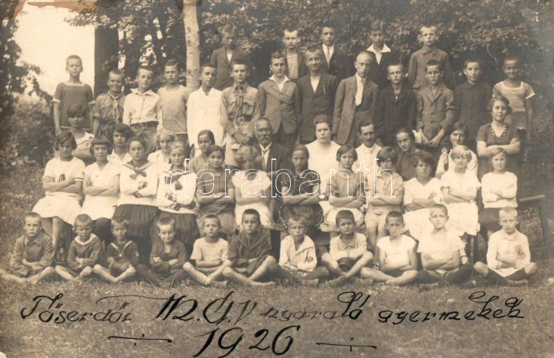 1926 Tőserdő, MÁV nyaraló gyerekek, photo (fl)