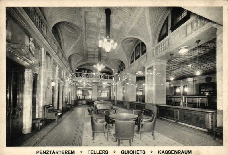 Budapest V. Deák Ferenc utca 5. Pesti Hazai első Takarékpénztár-egyesület, Pénztárterem (15 x 10.5 cm)