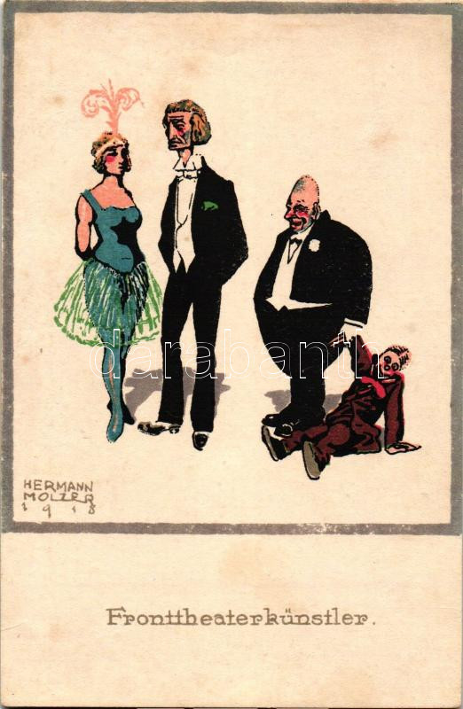 1918 Fronttheaterkünstler; Kriegsfürsorge der K.u.K. 1. Armee, Druck und Verlag Lehmann / WWI Austro-Hungarian military, humour s: Hermann Holzer (wet damage)