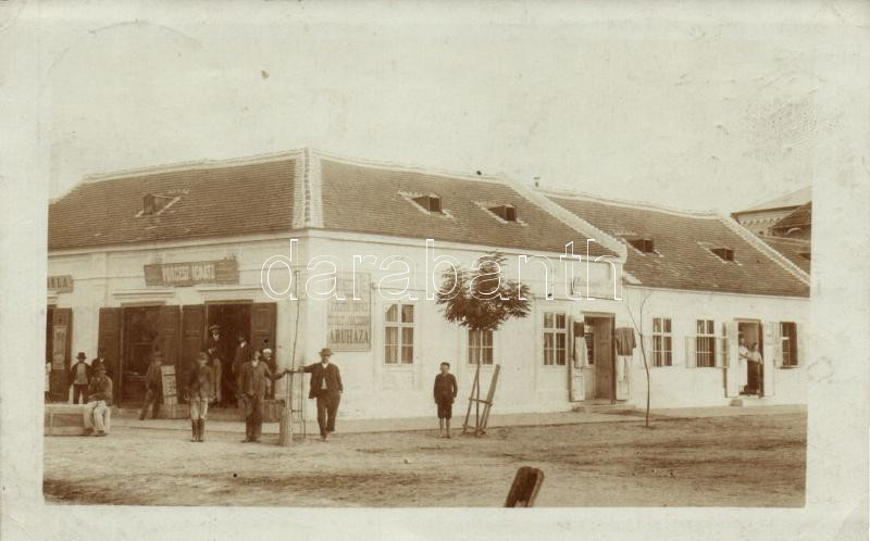 1910 Dunaszerdahely (?) Porgesz Ignátz divatáruháza / street with shop, photo