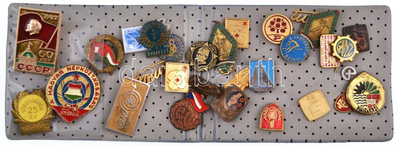 29db-os vegyes magyar és külföldi jelvény és kitűző tétel, közte "Volán Törzsgárda 25 év" fém jelvény, "A Magyar Népköztársaság Úttörője" festett fém jelvény T:vegyes