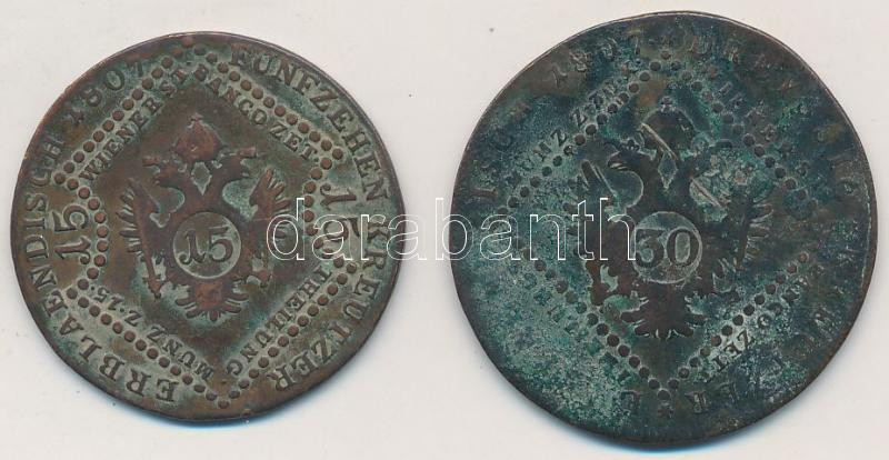 1807B 15kr Cu + 1807S 30kr Cu "I. Ferenc" T:3