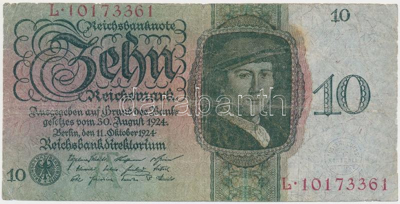 Németország / Weimari Köztársaság 1924. 10M T:restaurált, folt