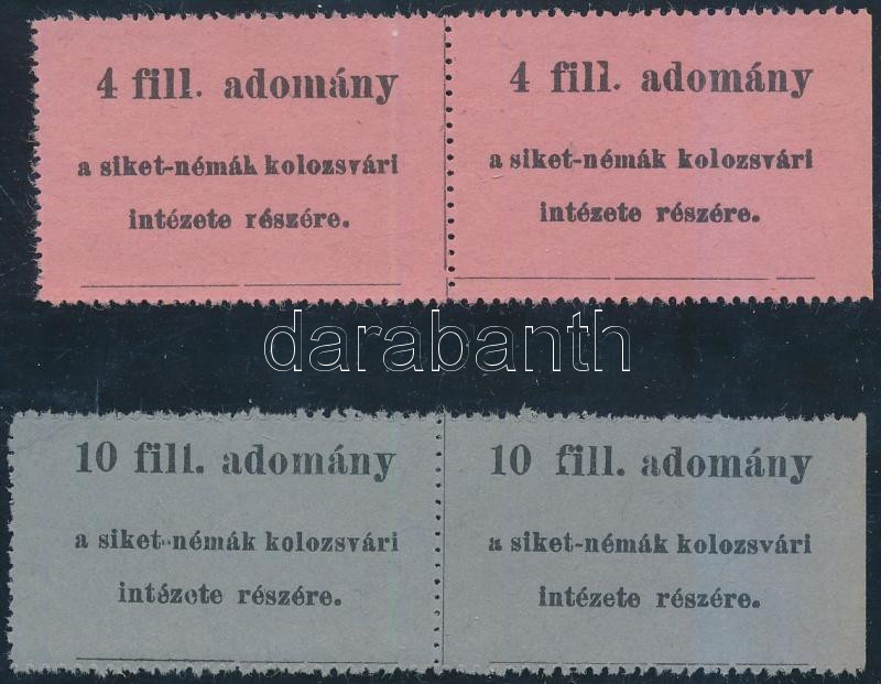 Hungary ~1920. 4 Fillér in sheet of 2 + 10 Fillér in sheet of 2, donation for the "Deaf-mute Institute of Cluj"