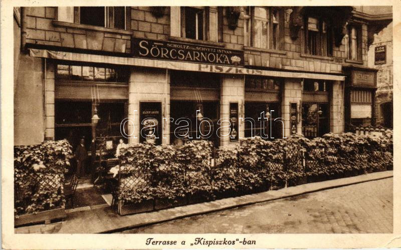 Budapest V. Schwetz-Babocsy sörcsarnoka a 'Kispiszkos'-hoz, terasz; Curia utca 1. (EK)