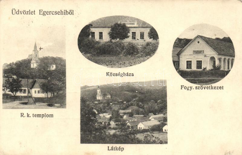Egercsehi, Községháza, Fogy. szövetkezet, Római katolikus templom