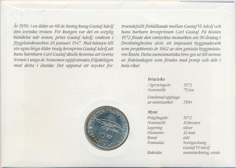 Description: Svédország 1972. 10Kr Ag "VI. Gusztáv Adolf 90. születésnapja" bélyeges borítékban alkalmi bélyegzős bélyeggel, tájékoztatóval T:2