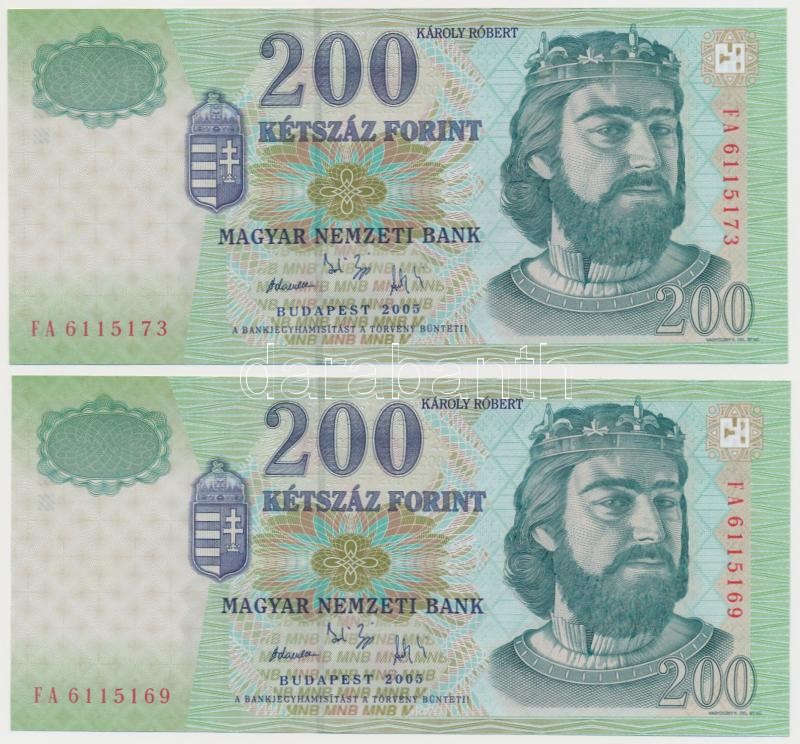 2005. 200Ft "FA" (5x) sorszámkövetők T:I
