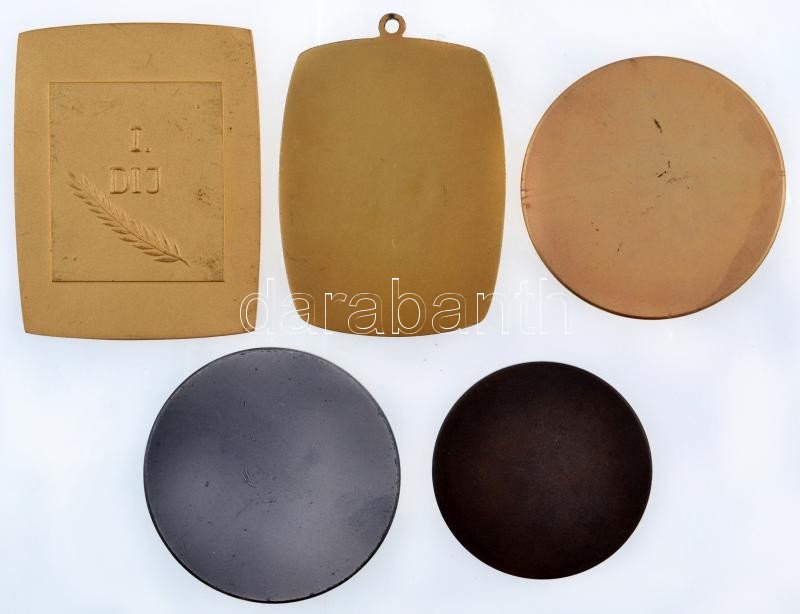 Description: ~1960-1970. 5db-os szocialista érem tétel: "64. Országos Mezőgazdasági Kiállítás és Vásár" (61x81mm) + "65. Országos Mezőgazdasági Kiállítás és Vásár" (67,5x86,5mm) "68. Országos Mezőgazdasági és Élelmiszeripari Kiállítás és Vásár" (60mm) + "Alkotó Ifjúság - I. Országos Kiállítás" (2x) (70,5mm) T:1-,2
