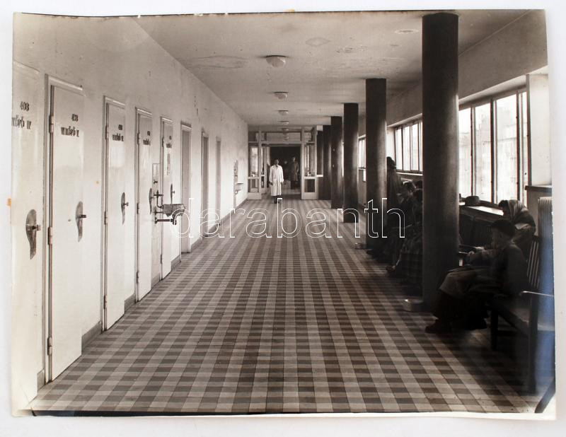 cca 1958 Dr. Csörgeő Tibor (1896-1968): Budapest, XI. ker. SZTK rendelője, pecséttel jelzett vintage fotó, 30x40 cm