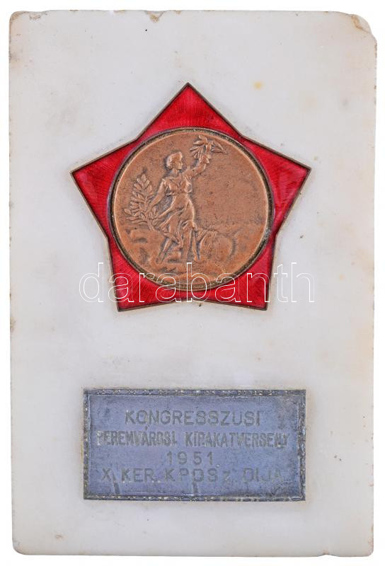 1951. "Kongresszusi Peremvárosi Kirakatverseny - X. ker. KPDSZ Díja" zománcozott Br díjérem márványlapon (119x79mm) T:2