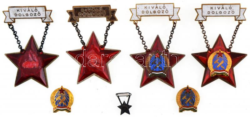 ~1950. "Kiváló Dolgozó" Rákosi-címeres zománcozott fém kitüntetés (4x), egyik miniatűrrel, három eredeti tokban T:2