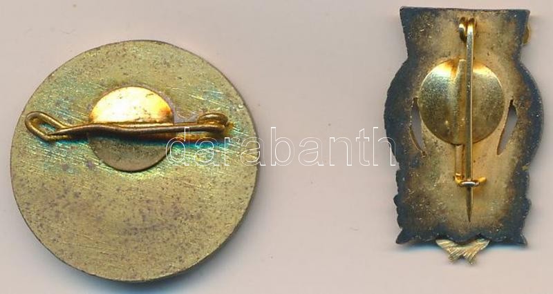 ~1960-1970. "Testnevelés és Sport Kiváló Dolgozója" aranyozott, zománcozott fém jelvény tokban + "Katonai Sportverseny Ifjú Résztvevője" zománcozott fém jelvény nem saját tokban T:2,2-