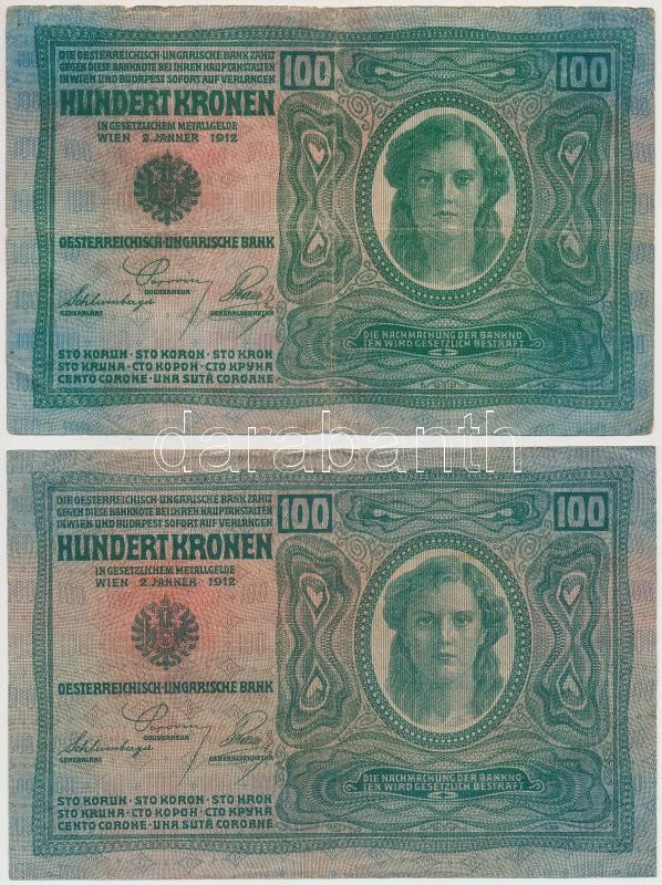 1912. 100K piros "Deutschösterreich" felülbélyegzéssel, mindkét oldal német (2x) T:III,III-