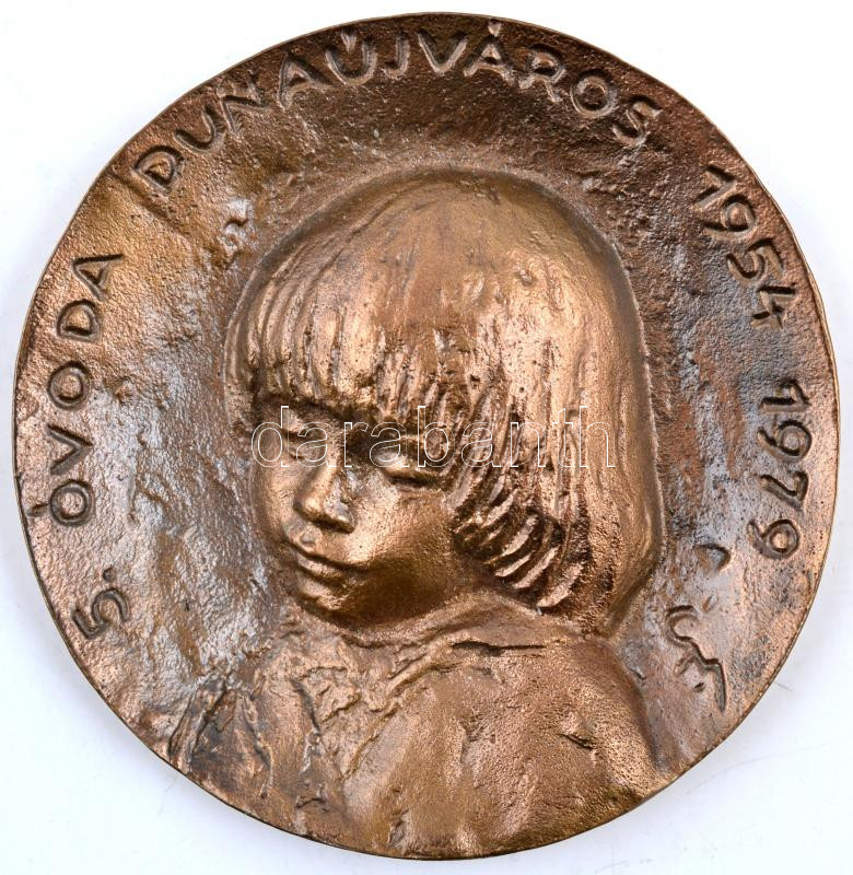 Cyránszki Mária (1940-) 1979. "5. óvoda Dunaújváros 1954-1979" Br plakett (92mm) T:1