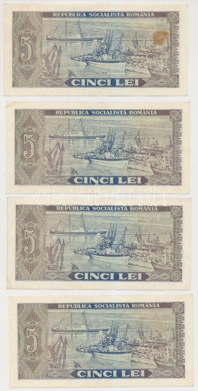 Romania 1966. 5 Lei (4x) sequential serials C:VF,F nice paper