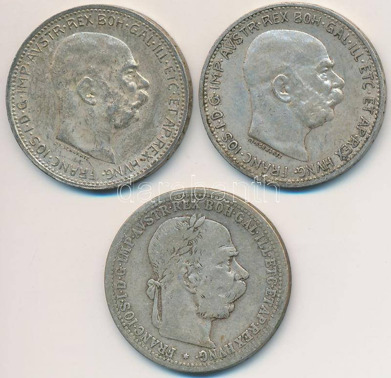Ausztria 1904-1913. 1K Ag "Ferenc József" (3x) T:2,2- patina