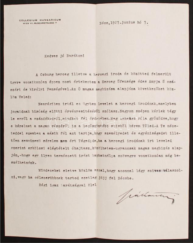 1924 Lábán Antal(1884-1957) a bécsi Collegium Hungaricum igazgatójának levele aláírásával
