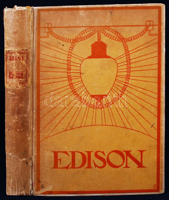 Balla Ignác: Edison, több forrásmunka alapján. Az előszót írta Fodor István udvari tanácsos. Nyolc képpel, második kiadás. Bp., 1913, Singer és Wolfner. Kiadói kartonált kötés, gerincnél szakadt, sérült, egy lap kissé szakadt, viseltes állapotban.