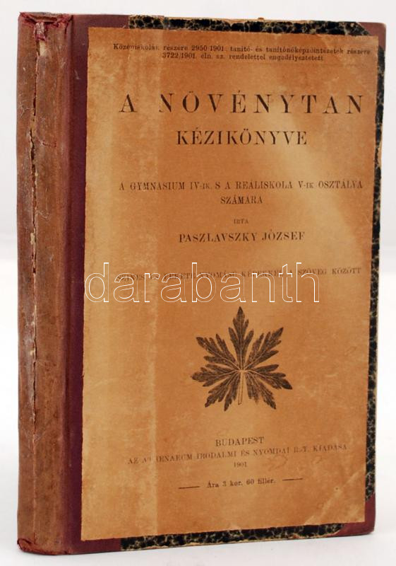 Paszlavszky József: A növénytan kézikönyve. A gymnasium IV-ik, s a reá... https://www.darabanth.com/en/247-Online-auction/247.0/Other-collectibles/Books-Science-and-technology~1000032/Paszlavszky-Jozsef-A-novenytan-kezikonyve-A-gymnasium-IV-ik-s-a-realiskola-V-ik-osztalya-s~II1041837