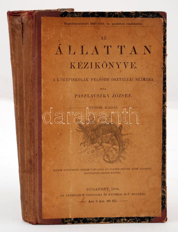 Paszlavszky József: Az állattan kézikönyve. A középiskolák felsőbb osz... https://www.darabanth.com/en/247-Online-auction/247.0/Other-collectibles/Books-Science-and-technology~1000032/Paszlavszky-Jozsef-Az-allattan-kezikonyve-A-kozepiskolak-felsobb-osztalyai-szamara-Ot~II1041825