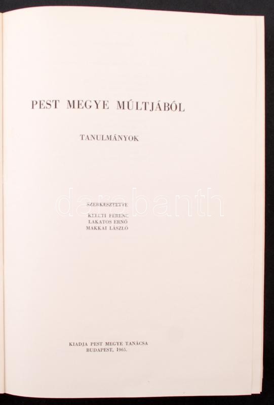 Pest megye múltjából. Tanulmányok. Szerk.: Keleti Ferenc, Lakatos Ernő, Makkai László. Bp. 1965. Pest Megye Tanácsa. 459 p. + 2 térképmell. (Balla Antal: Pest m. térképe 1793. Reprint. Nagyméretű, kihajtható.) Kiadói nyl kötésben.