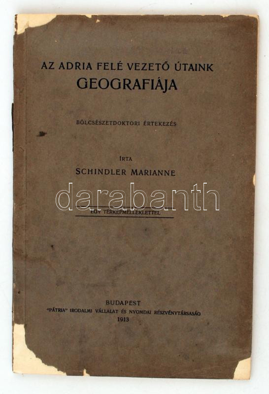 1913 Schindler Marianne: Az Adria felé vezető útjaink geográfiája. Térképmelléklettel. Kissé viseltes fedőborítóval.