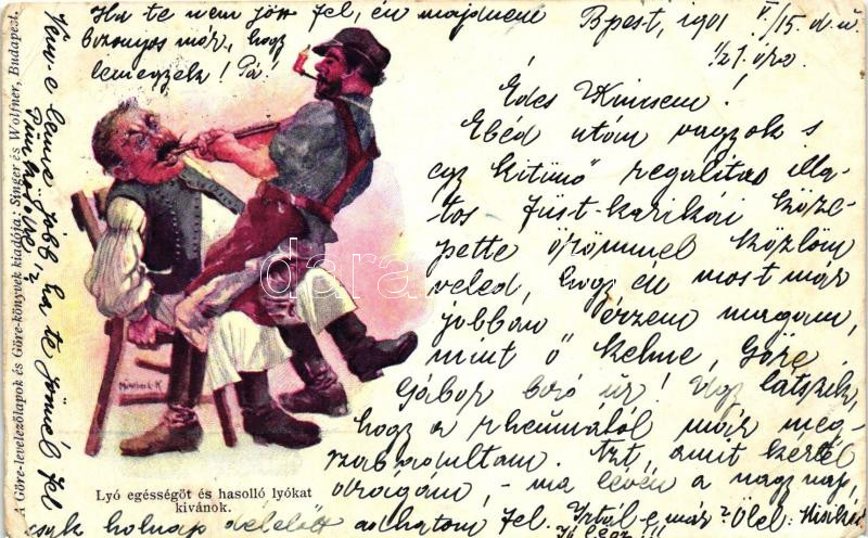 Göre-levelezőlap és könyvek 'Singer és Wolfner, Budapest' / Hungarian humorous folklore s: MühlBeck K. (kis szakadás / small tear)