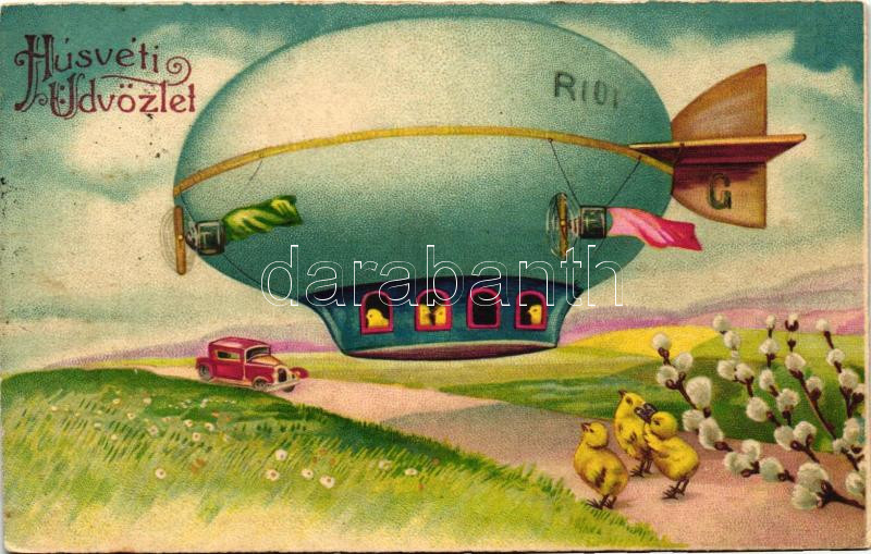 Easter, airship, automobile, Amag 2742, litho