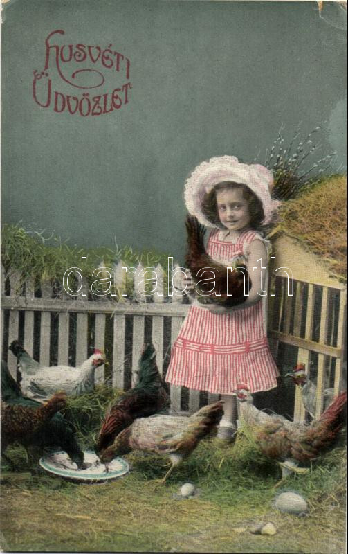 Easter, girl with roosters (small tear)