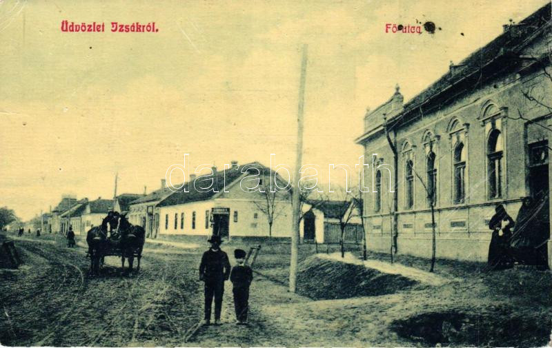 Izsák, Fő utca, lovas szekér, üzlet (EK)