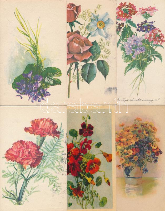 Description: Kb. 100 db főleg MODERN grafikai motívumlap 1950-es és 1960-as évekből; név- és születésnap / Approx. 100 modern graphic motive postcards from the '50s and the '60s; Name day and Birthday greetings