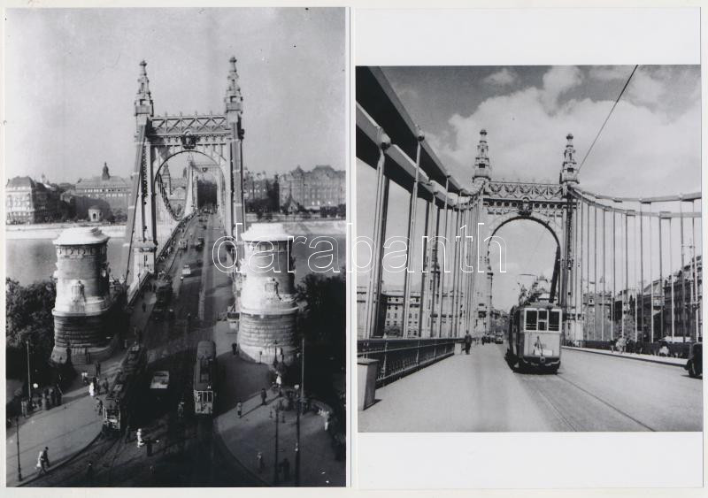cca 1930 Budapest, A 44-es villamos a régi Erzsébet hídon, 2 db régi negatívról készült modern nagyítás, 18x13 cm
